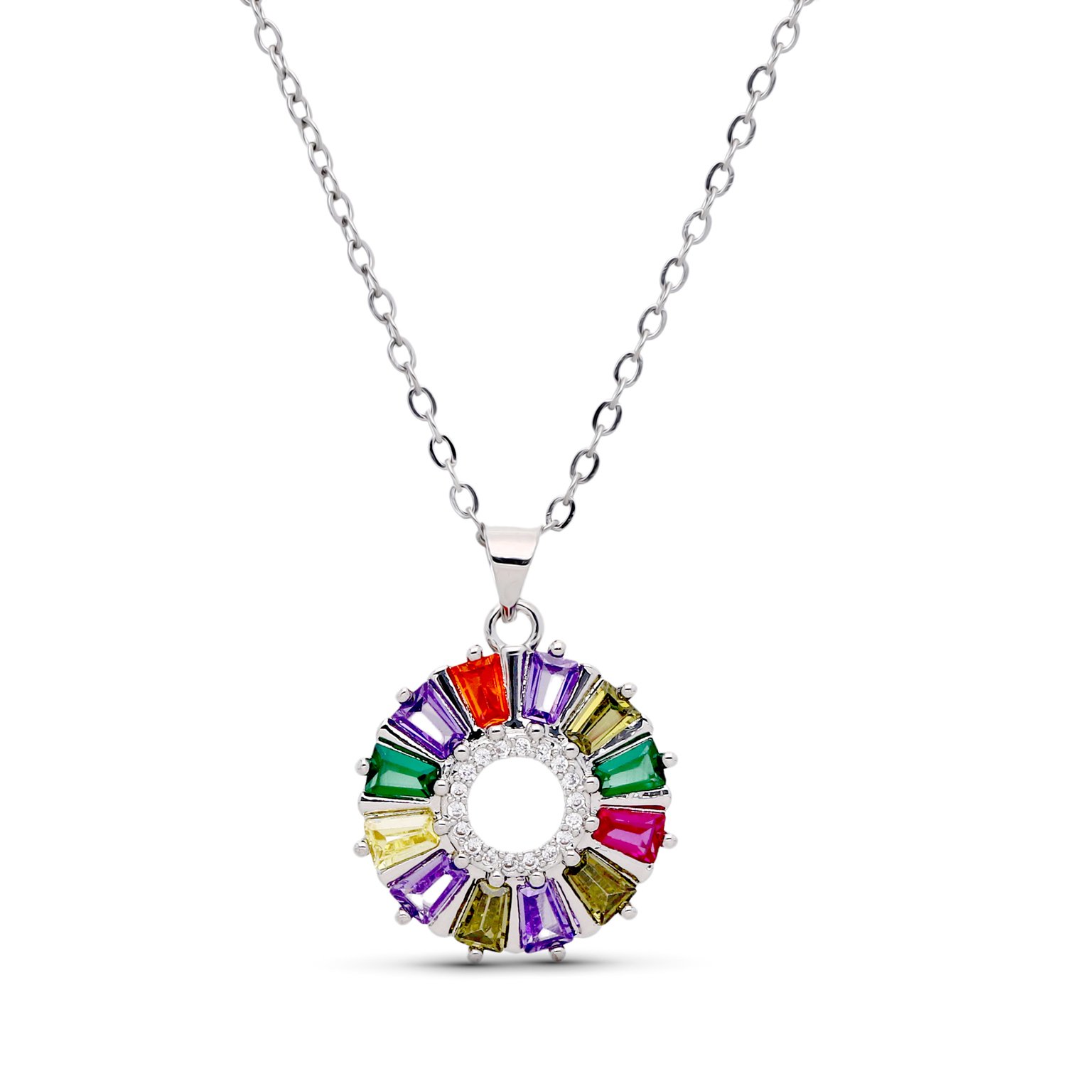 Cadena y colgante en acero con piedras colores , cadena en 50cm el colgante mide 1.9cm
