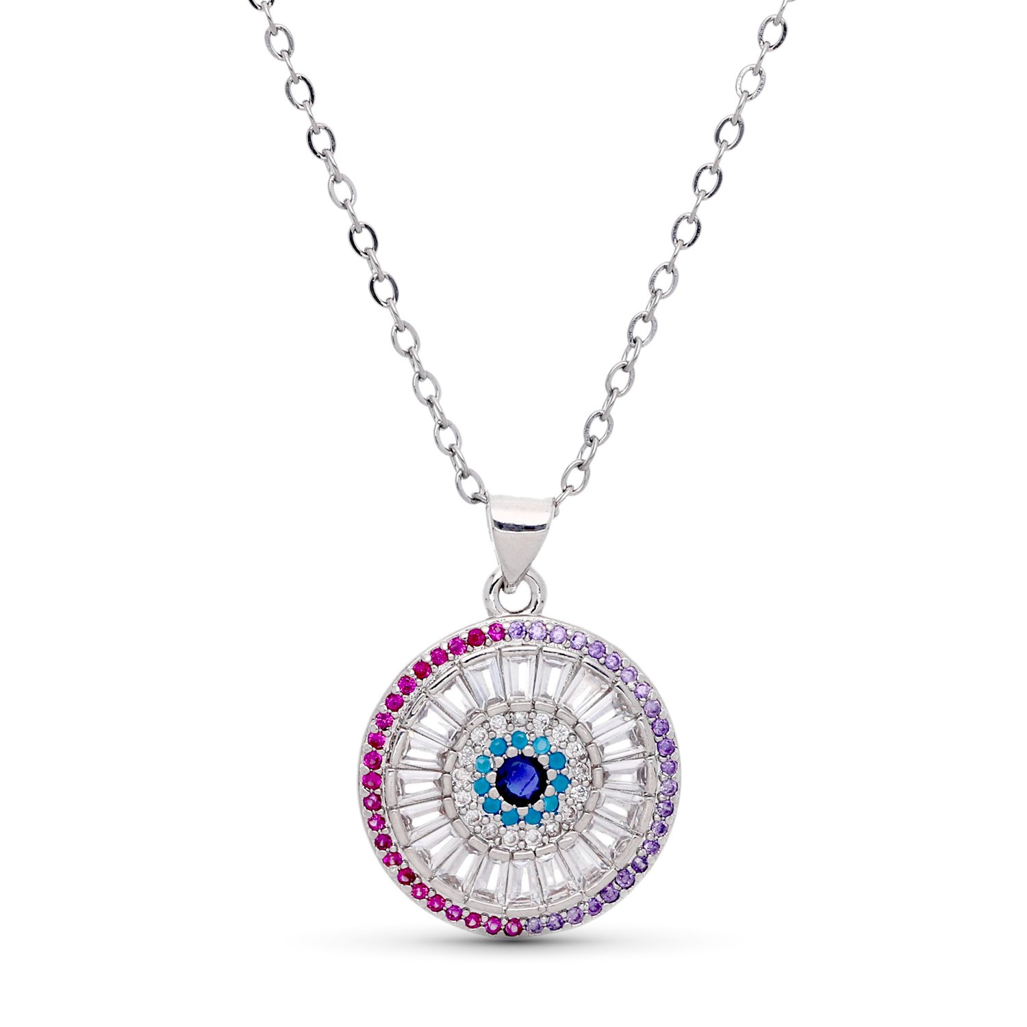 Cadena y colgante  en acero con piedras colores , cadena en 50cm el colgante mide 2cm
